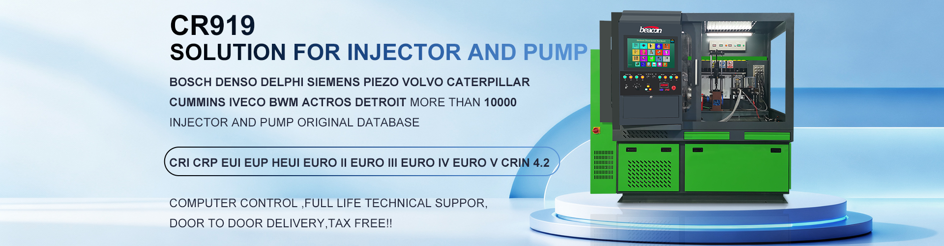 Beacon Machine is the leading manufacturer specializing in producing the Diesel Fuel Injection System Tester in China, is avaiable for CR( Common Rail pump Tester) , CRI(Common Rail Injectors Tester) ,Multifunctional Test Bench,Traditional diesel fuel injection pump test bench, PT-CUMMIN pump and injectors Test stand, EDC( Electronic Diesel Controler), Nozzle Tester,and many spares parts of Pumps. The Diesel fuel injection pump adopts the variable-frequency and variable-speed technique, which is divided into common rail and mechanical series, and there are over 200 kinds of test stands with a complete type and size, which can meet all kinds of users' demands to equipment. Its production process is advanced. Its technique has ranked the International leading level. The company's research and development capabilities are rich and the test measure is complete. We have a strict internal management and has established a complete and reliable quality assurance system. The company's product sale network has spread all over the country. The after-sales service of product has a system of its own, which can provide the best service for users timely. The company's aim is "honest and trustworthy operation and brazing new trails in science and technology".